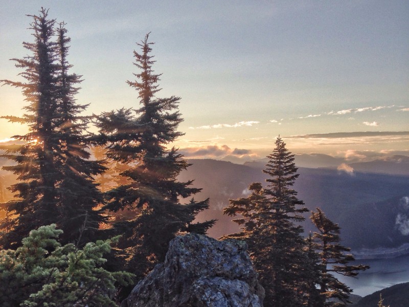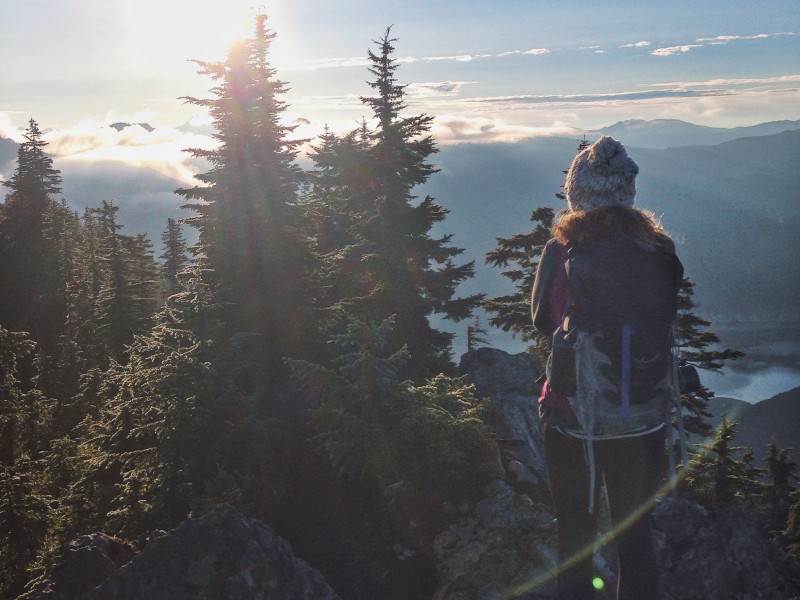 After an hour on the freeway, groggily attempting to have meaningful conversations, we found ourselves on a bumpy, mountain road in search of our trailhead. After a little bit of uncertainty and the first peak of morning light, we threw our packs on and hit the trail, eager to make it to the top before the sun rose over the majestic peaks of the Cascades.