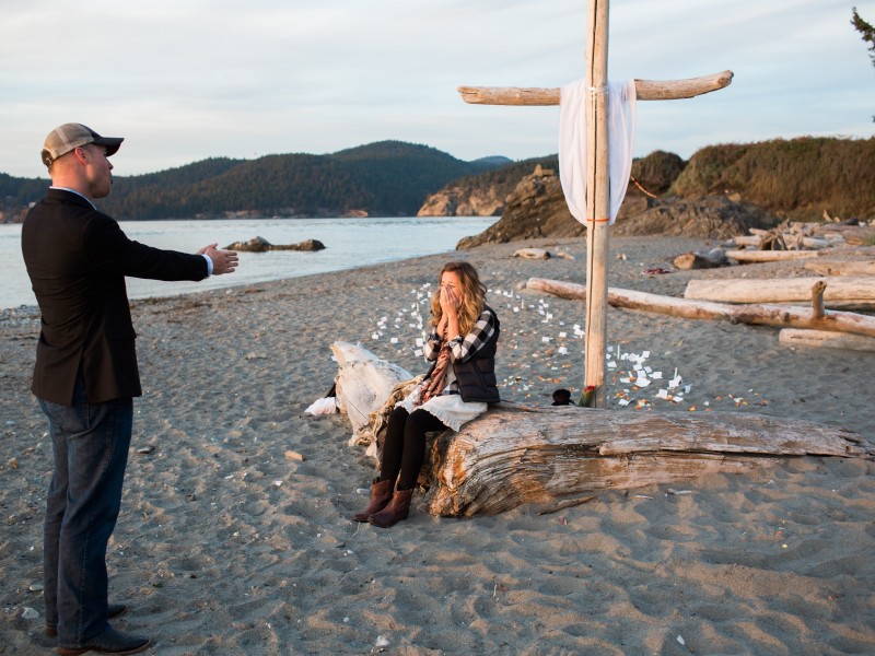 The Olympic Mountains were glowing pink as the cotton candy sky reflected off the water, my favorite kind of sunset. The islands in the distance soaked up the last few minutes of sunlight as Brooke and I made our way down to the sand. Looking out, I saw a trail of yellow and orange rose petals, candles and folded up love notes leading up to a beautifully constructed driftwood cross. “Look Brooke–someone is getting married here tonight!” I exclaimed with excitement. Not wanting to ruin someone else’s moment, I suggested we go somewhere else. Clearly I wasn’t really getting it…yet.