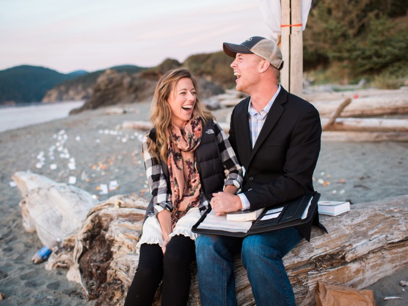 We prayed and worshipped at the foot of the cross that Josh had so thoughtfully constructed. God’s faithfulness has never been more clear than it was in that moment. The sun was long gone, but the sky was still glowing with every shade of pink and purple. Josh handed me a book that I’d mentioned to him a few times when we started dating. “1,000 Places To See Before You Die.” My parents had given me the world version years ago but I had always wanted the US & Canada version. Josh had marked a page–Whidbey Island, the very spot we sat. Cue even more tears.